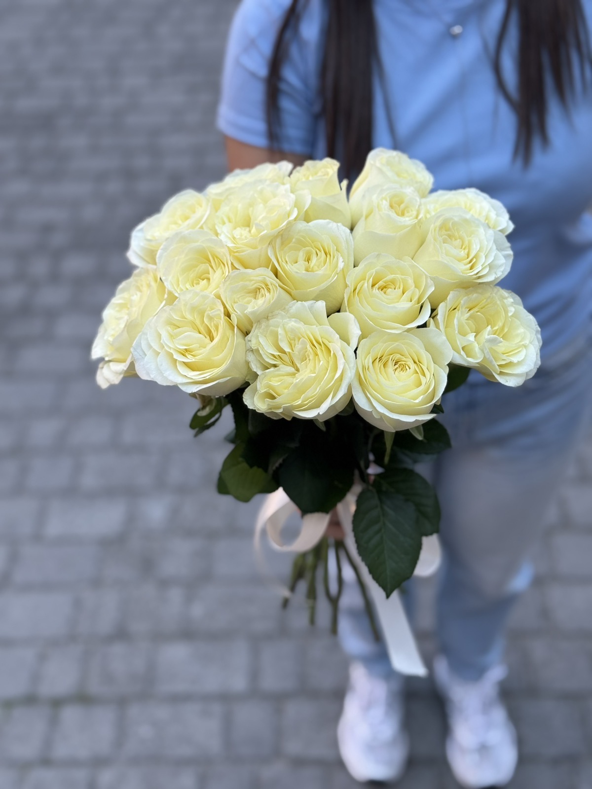 17 білих троянд сорту Аваланч (60 см)
