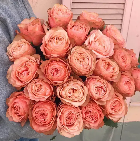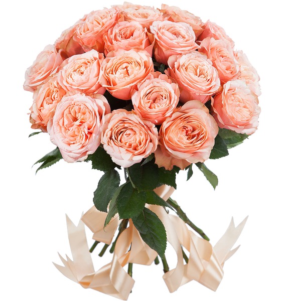 25 персикових півонієподібних троянд сорту Кахала (60 см)