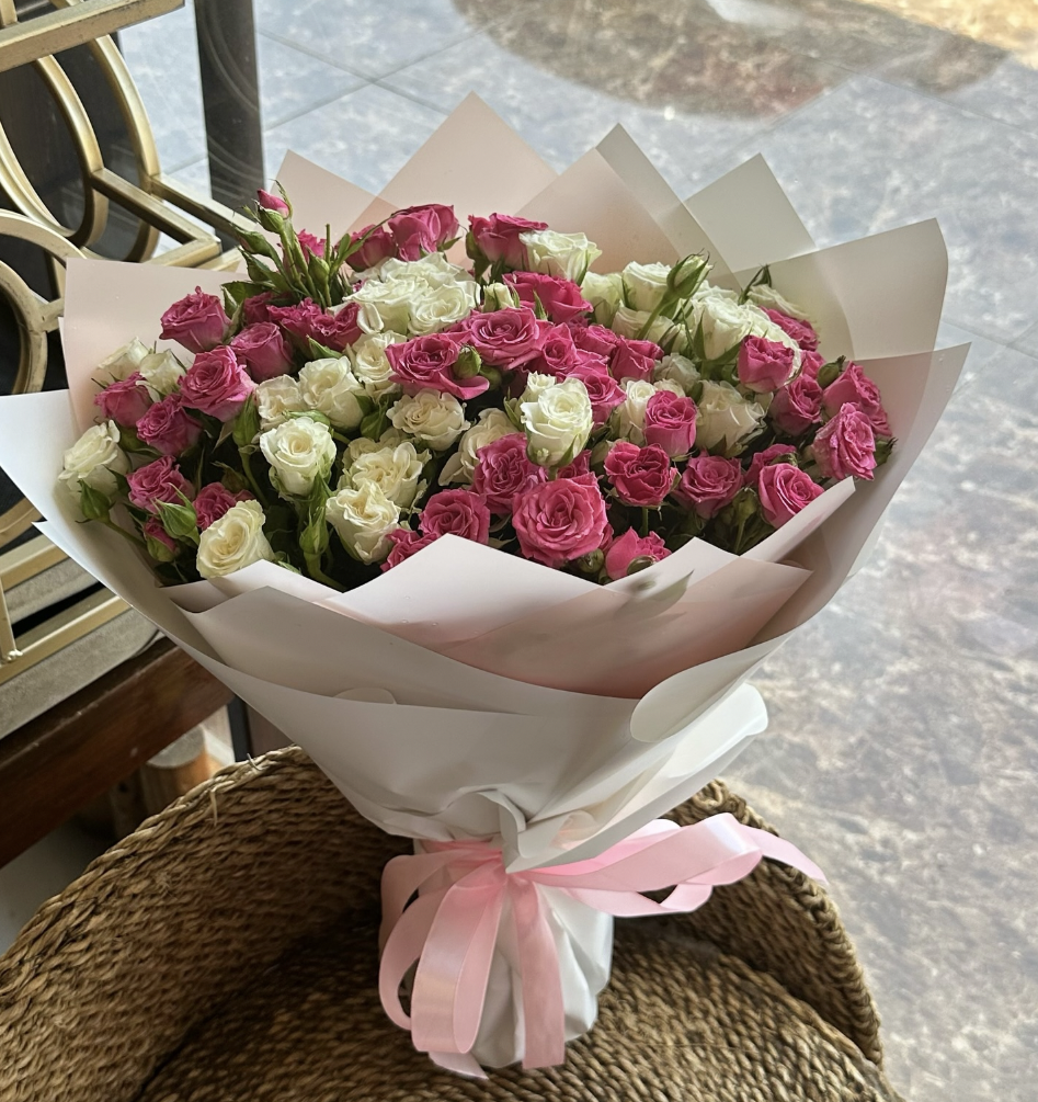 7 гілок рожевої кущової троянди