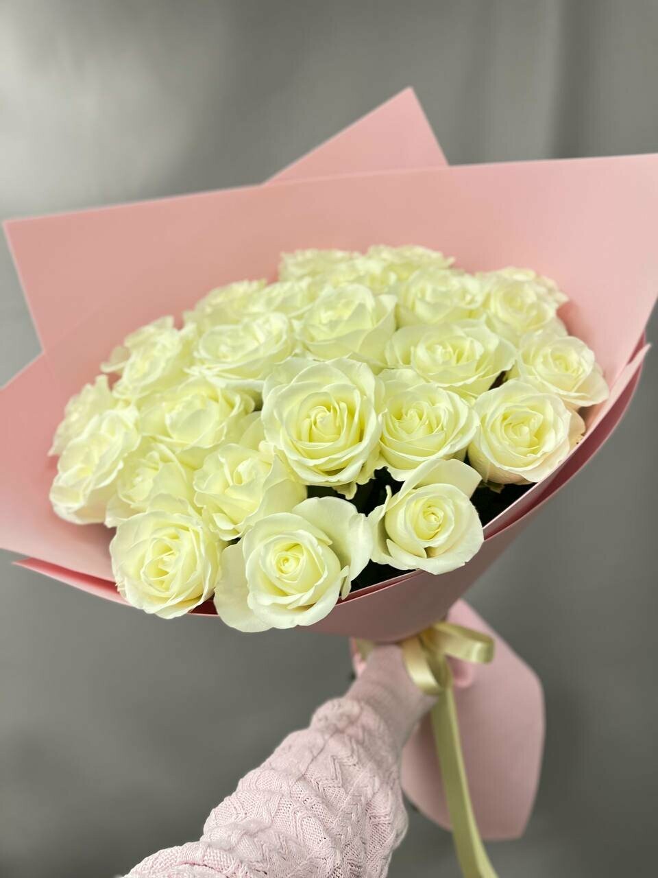 - 25 білих троянд сорту Аваланч (60 см)