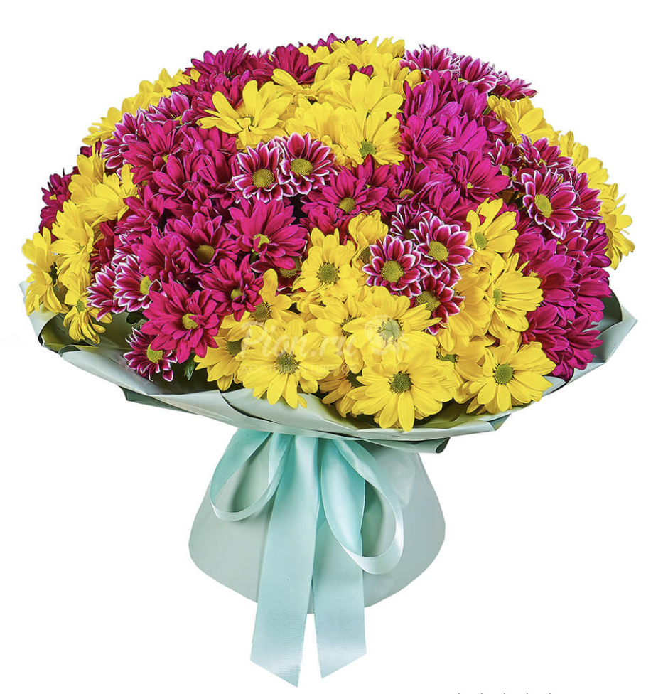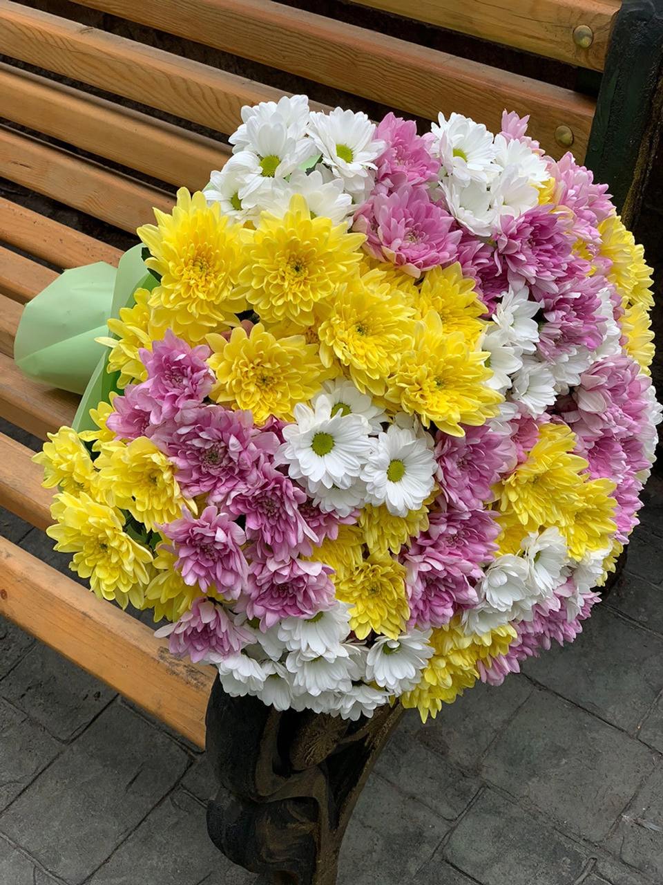 Головна / Квіти / Квіти / Хризантеми / Букет із 25 різнокольорових хризантем
