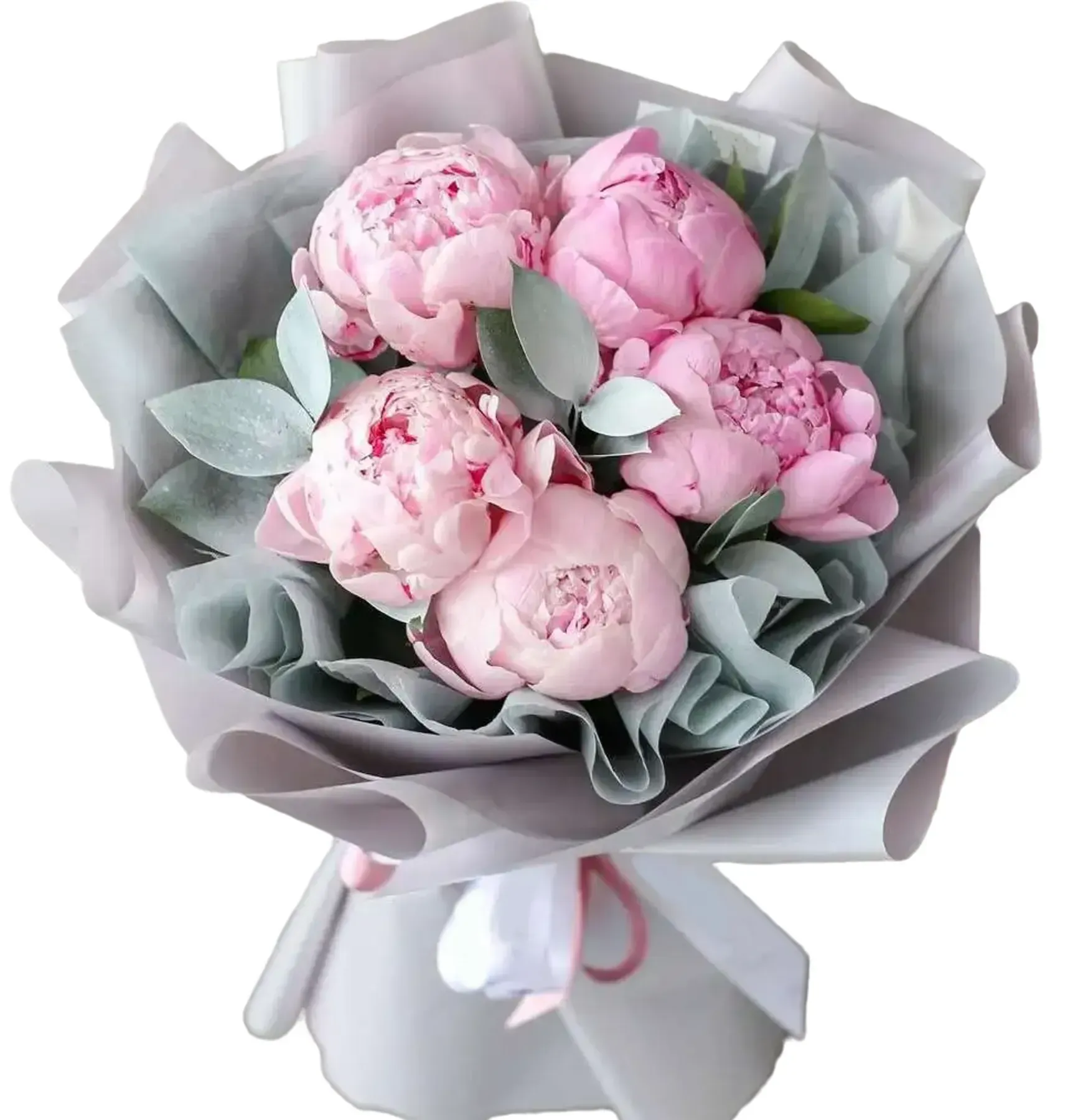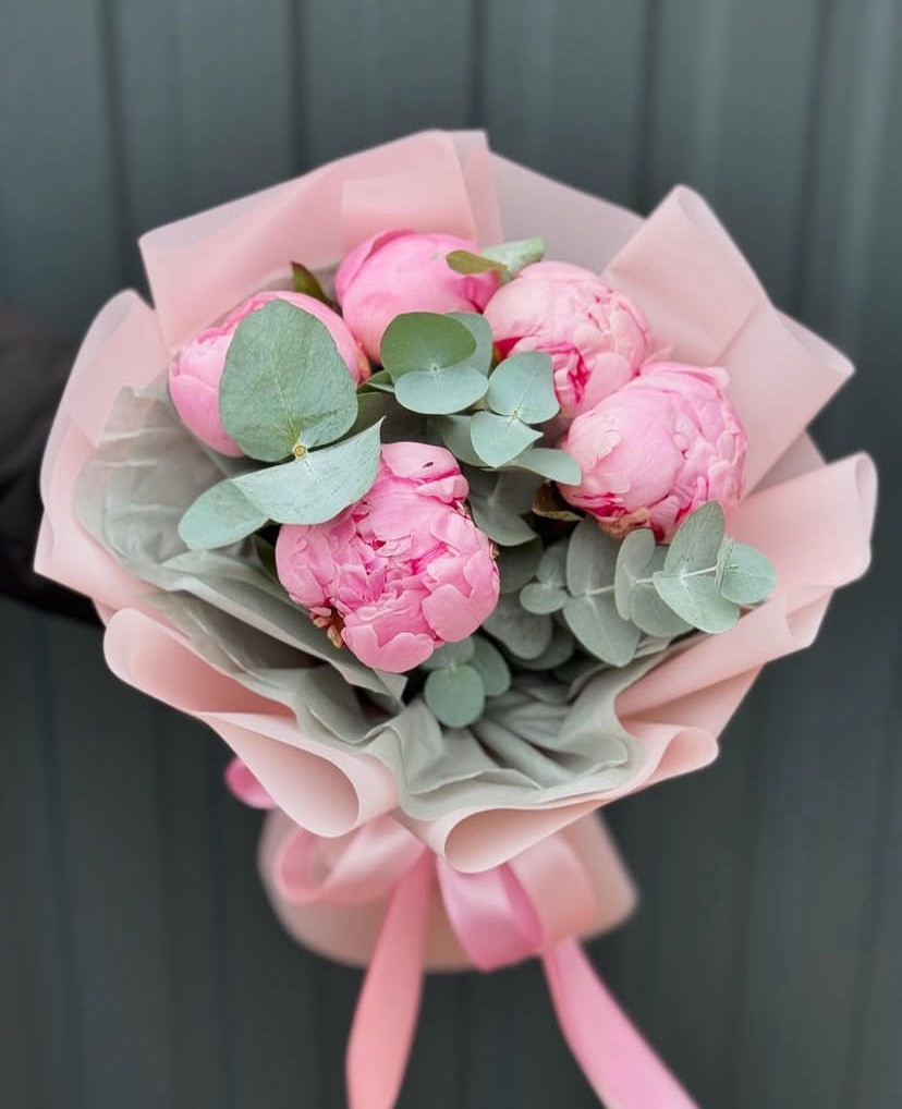 Головна / Квіти / Квіти / Півонії / Букет із 5 рожевих півонії