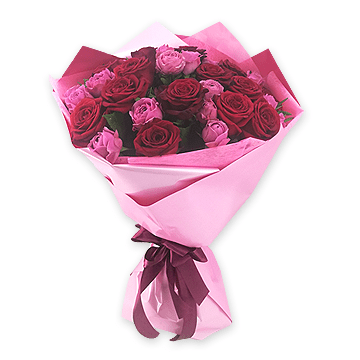 Букет «Насолода» з 13 червоних та 4 рожевих кущових троянд поєднує глибину почуттів і ніжність у кожній гілочці. Насичені червоні відтінки символізують пристрасть і любов, а рожеві додають композиції тепла та романтики.