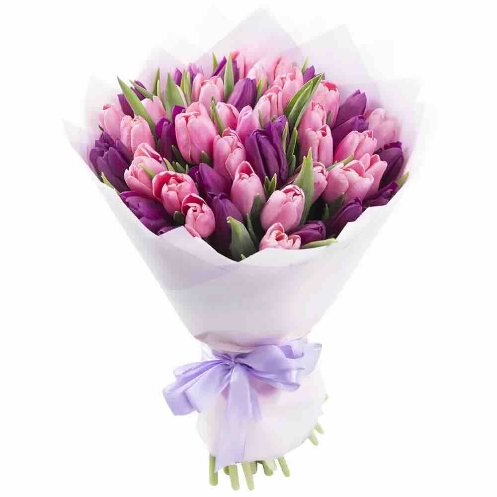 Головна / Квіти / Квіти / Тюльпани / Букет із 51 рожевого та фіолетового тюльпана