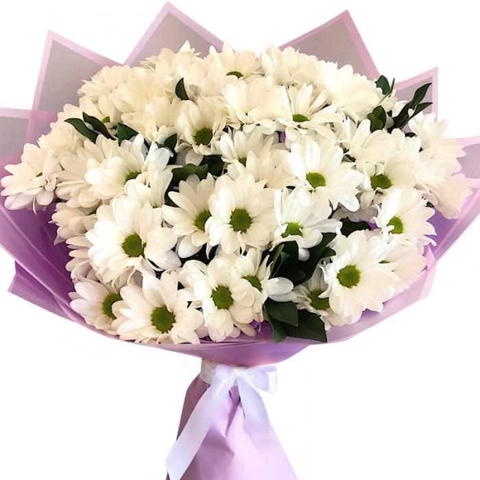 Головна / Квіти / Квіти / Хризантеми / Букет із 7 білої ромашкової хризантеми «Світанок»
