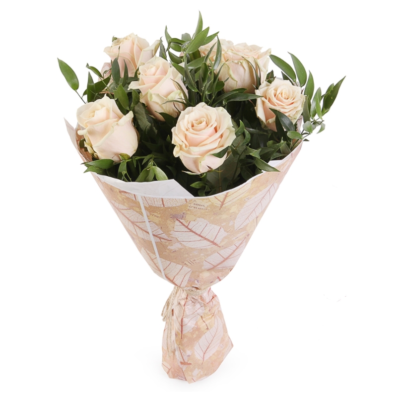 7 кремових троянд сорту Піч Аваланч або Талея (60 см)