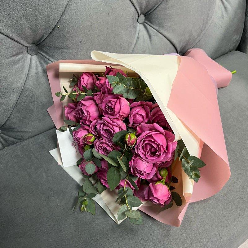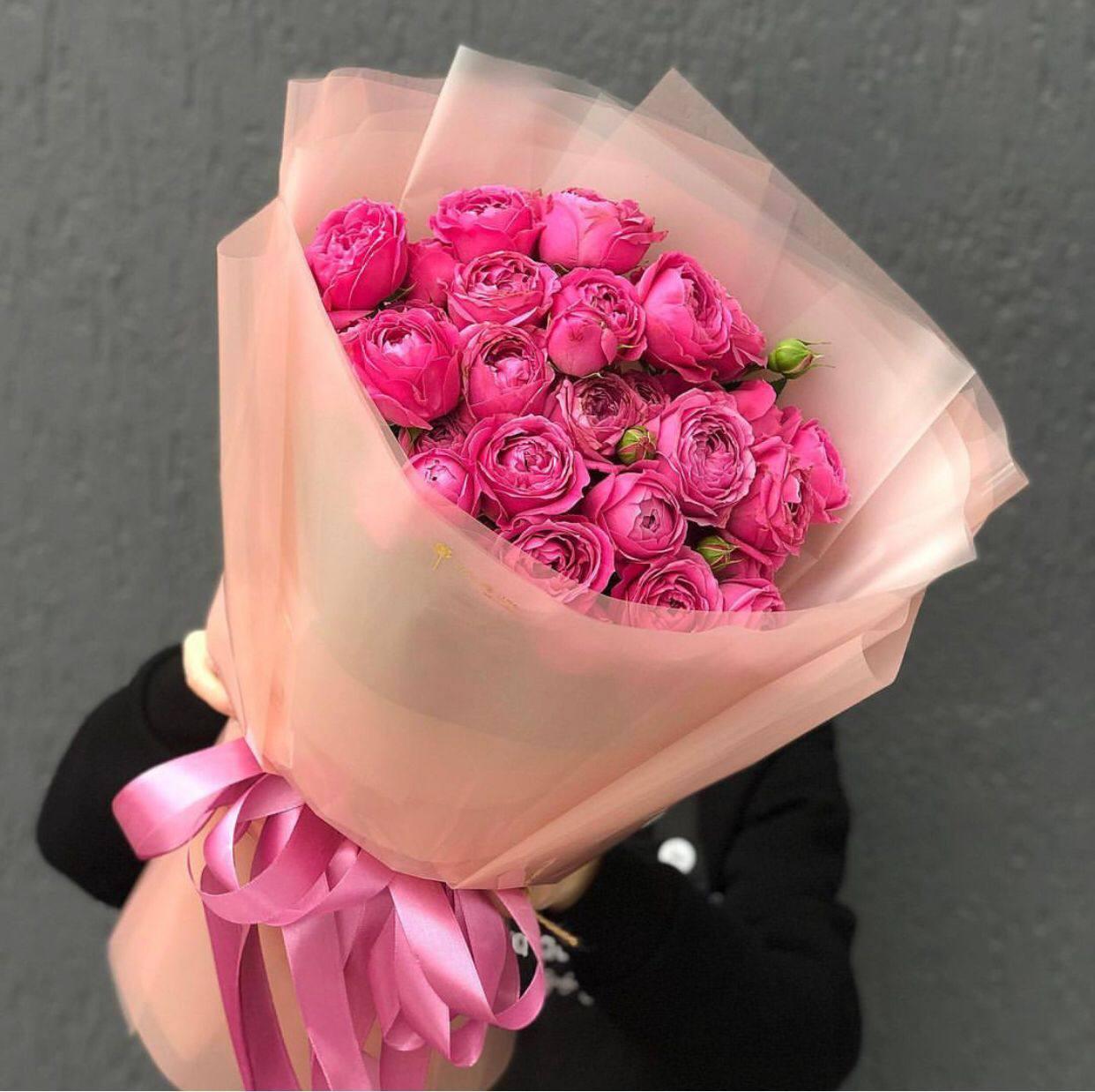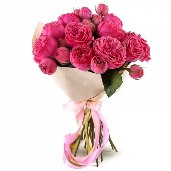 9 рожевих кущових півонієподібних троянд сорту Місті Бамблз