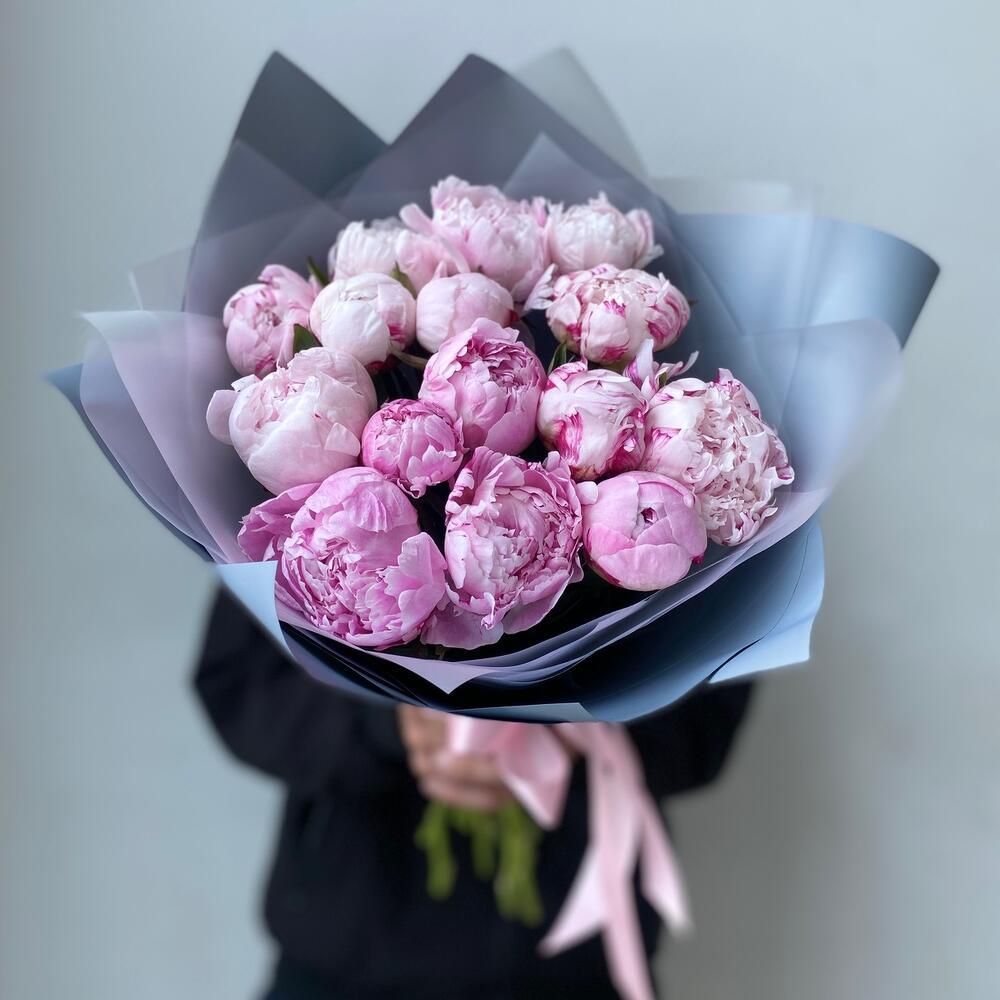 / Букет із 15 рожевих півоній