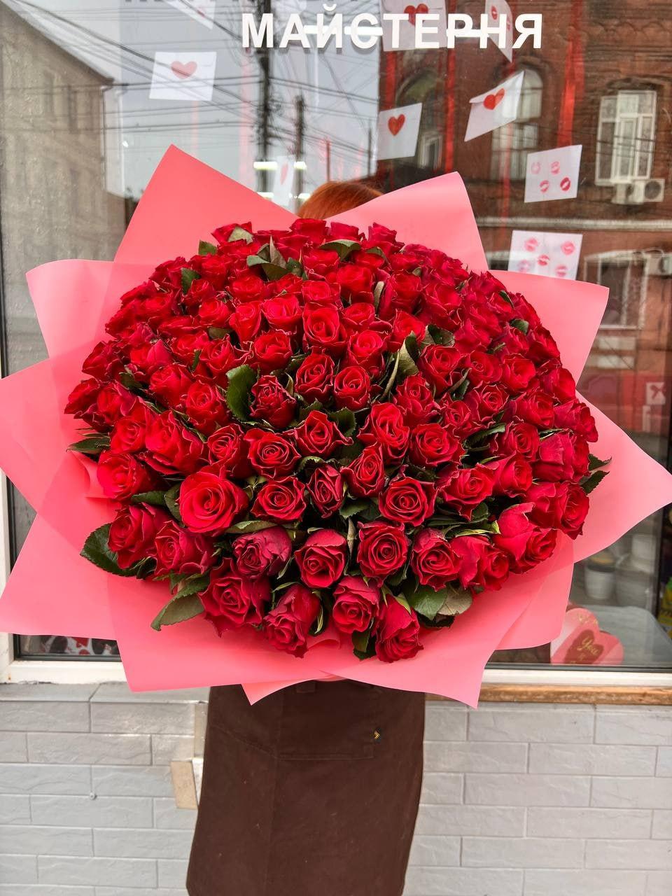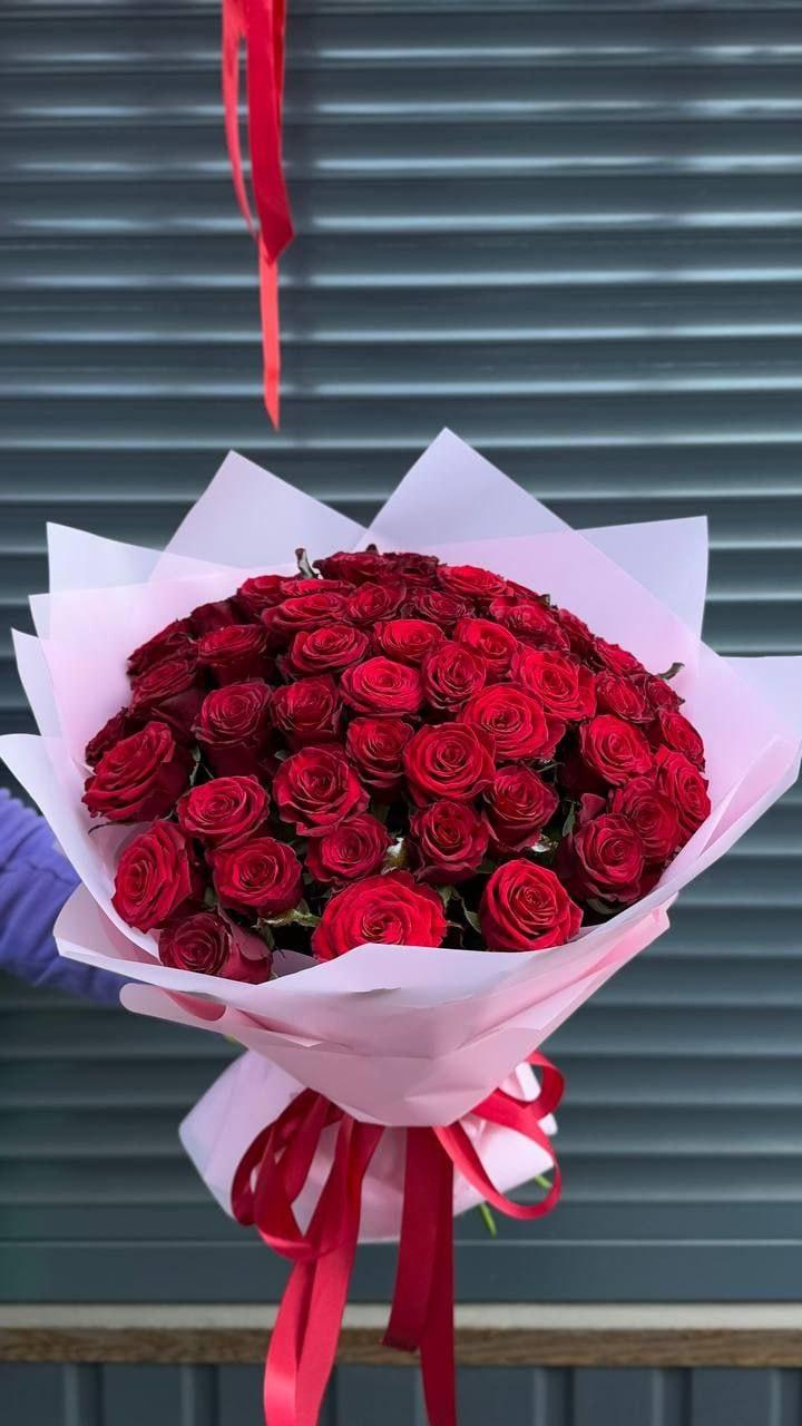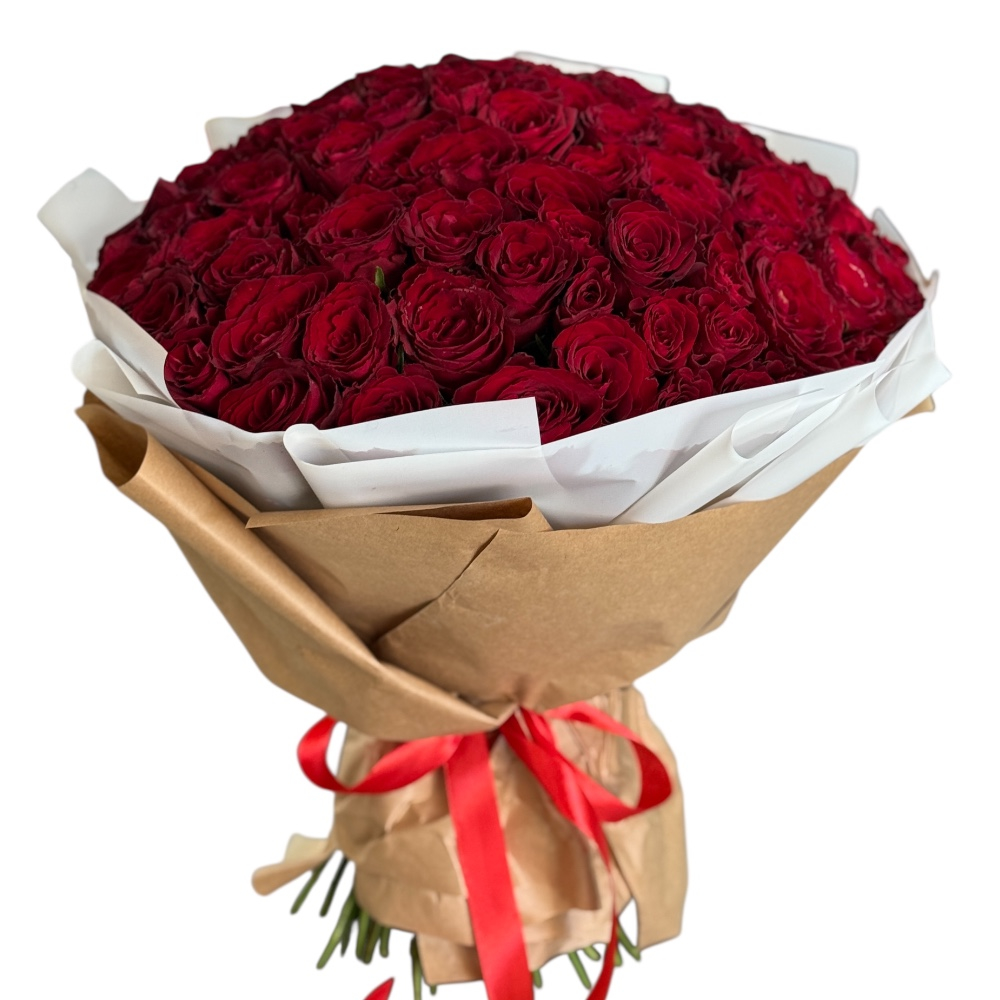 - 101 червона троянда сорту ГранПрі або Престиж (60см)