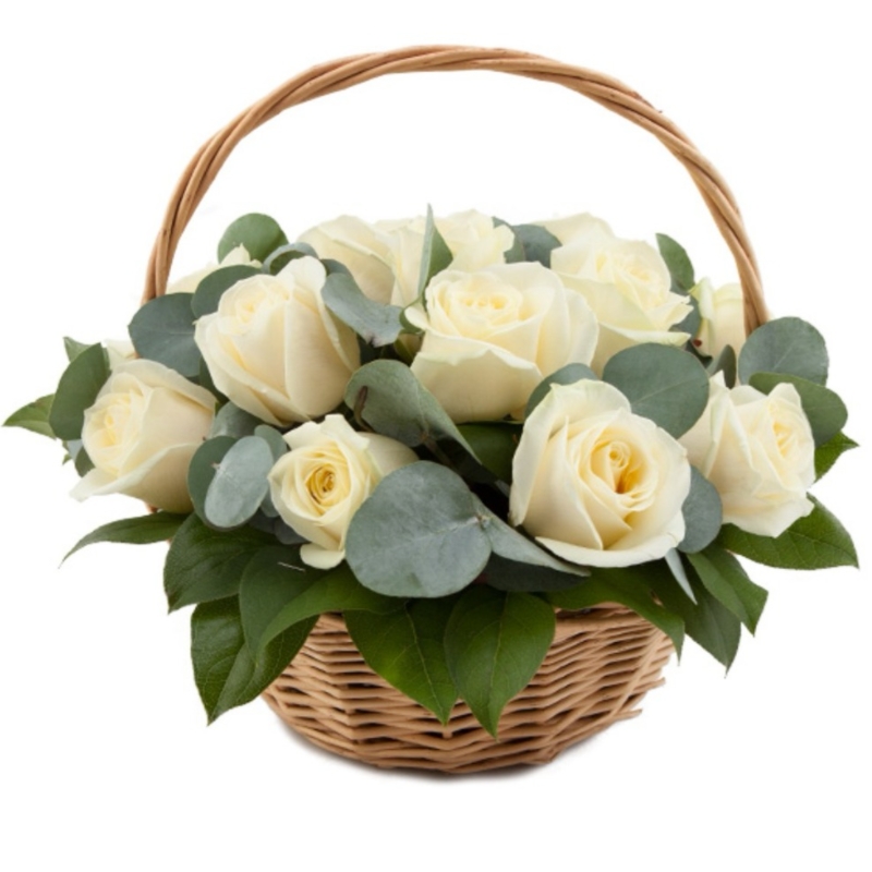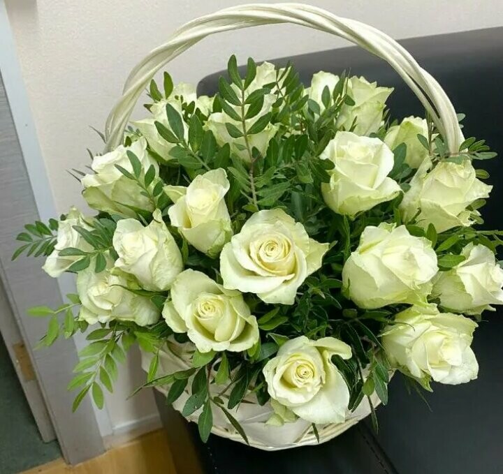 - 25 білих троянд сорту Аваланч (60 см)