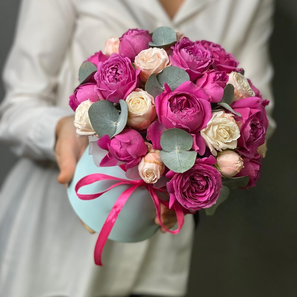 - Коробка кругла + оазис та атласна стрічка