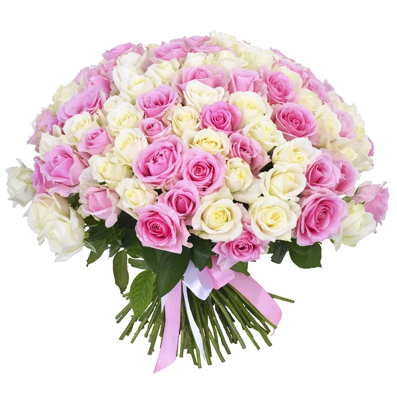Букет із 101 білої та рожевої троянди «101 ніжність»