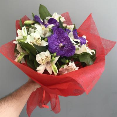 Головна / Квіти / Квіти / Альстромерія / Букет з альстромерії та орхідеї “Саванна”