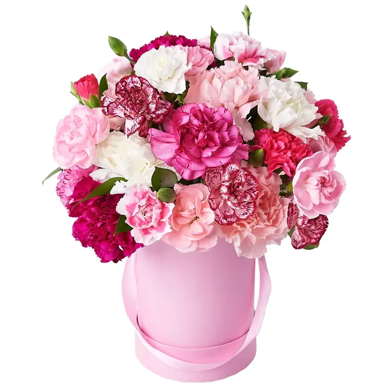 Головна / Квіти / Композиції / Квіти в коробці / Композиція в коробці з 19 гвоздик міксом