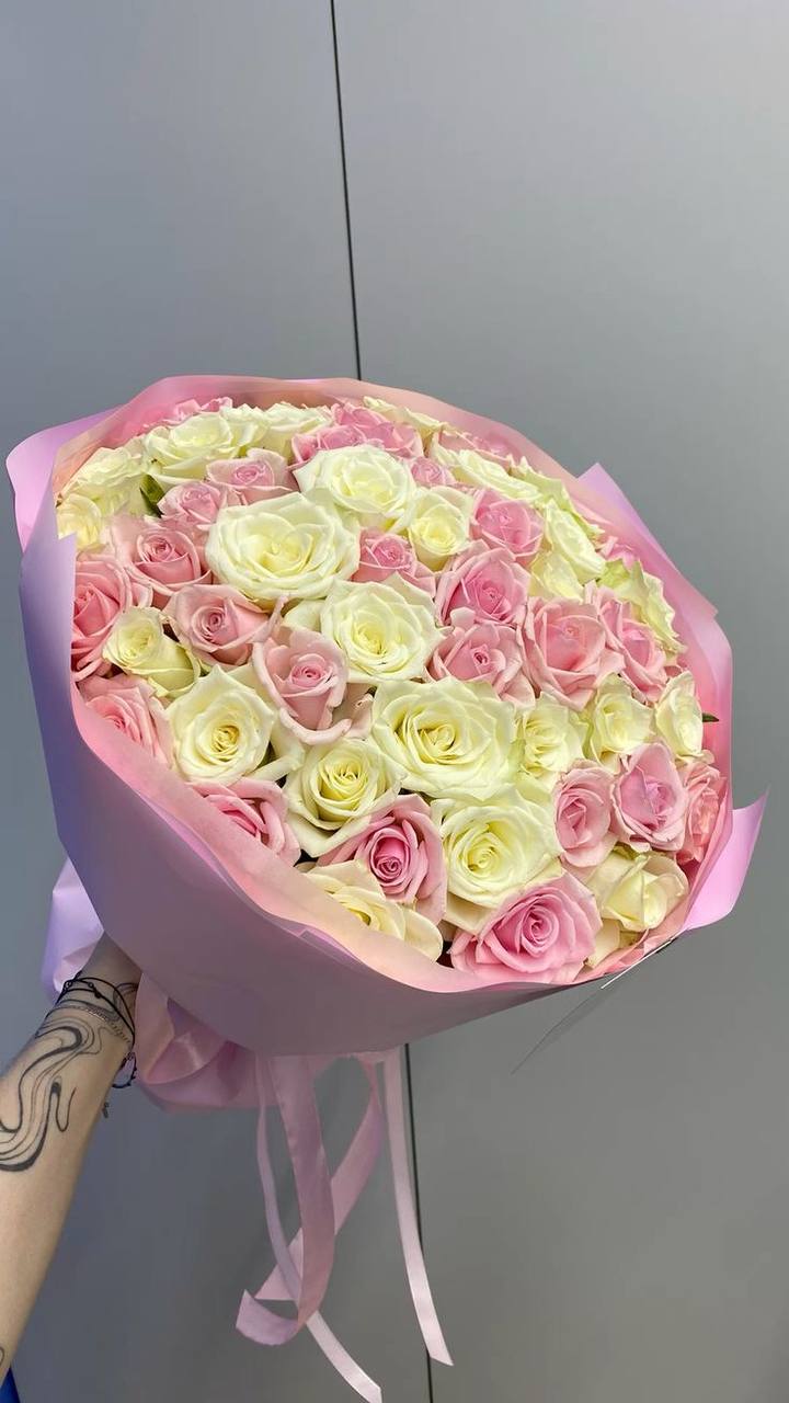 51 біла та рожева троянда (60 см)
