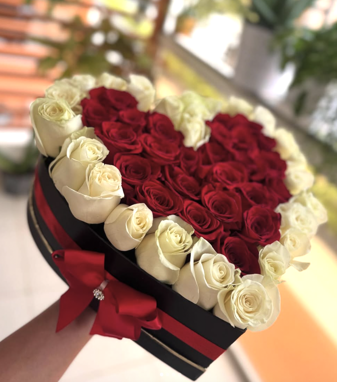 Коробка у вигляді серця + оазис та атласна стрічка