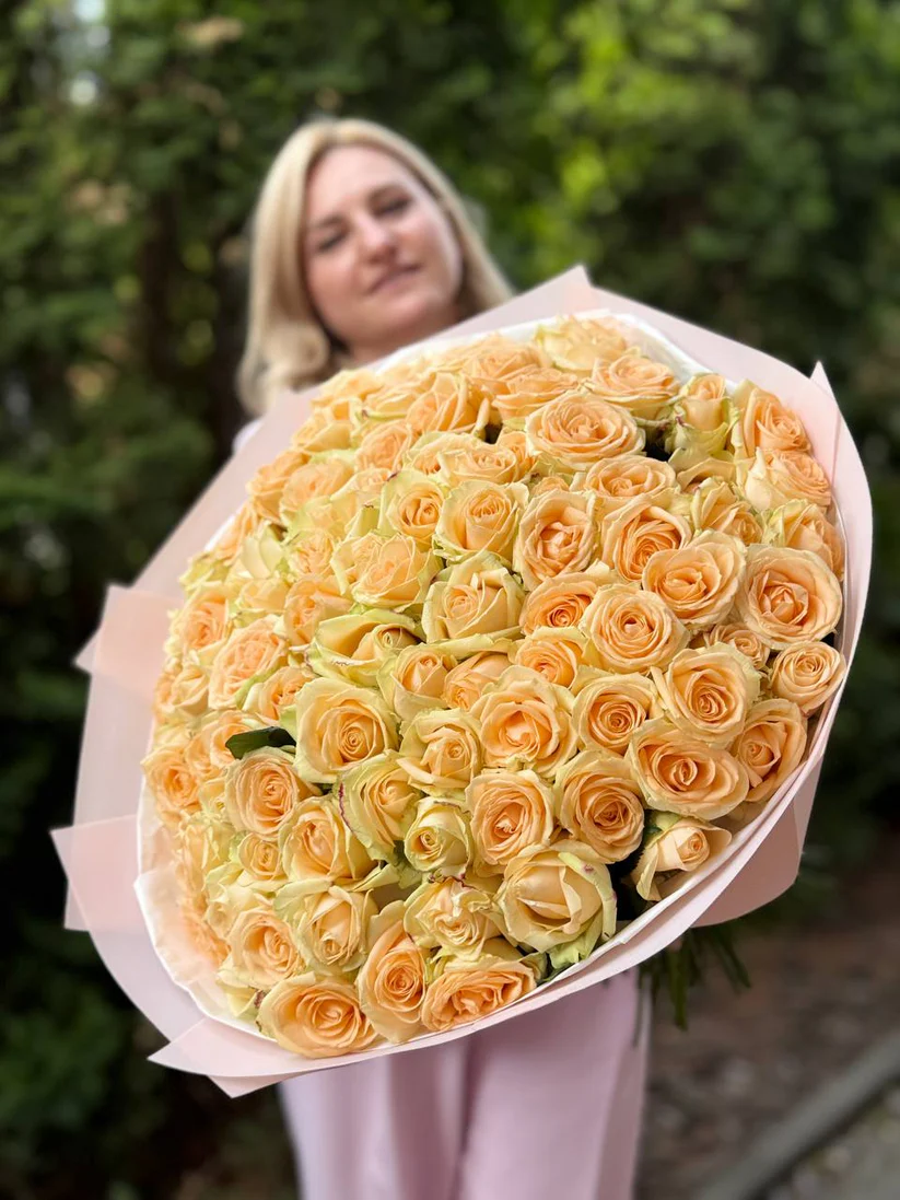 Неймовірний букет із 101 кремовою троянди - Зображення 2