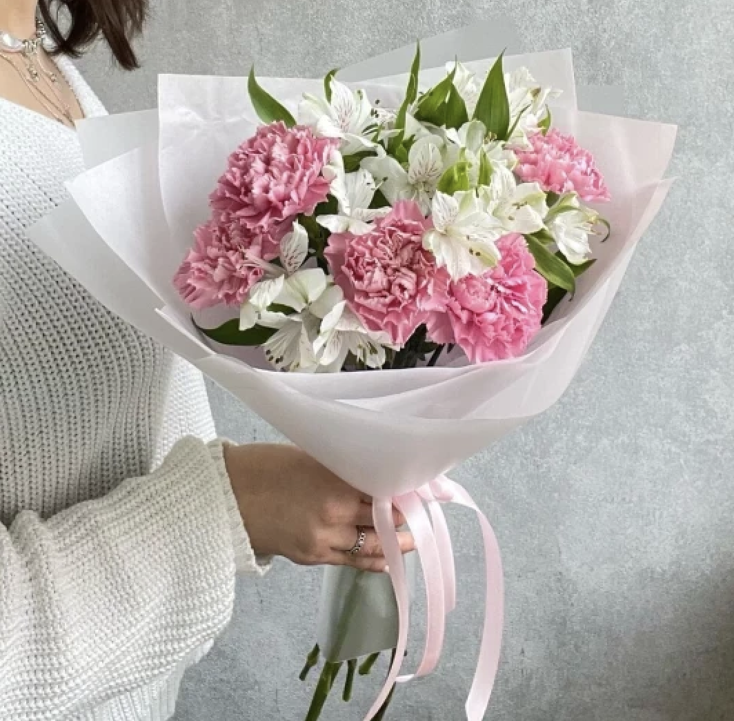 Букет із гвоздик та альстромерії “Маріель”